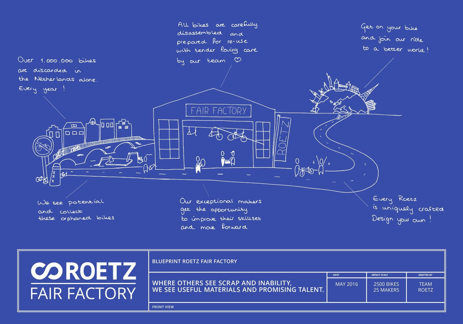 Bij Roetz geloven we in tweede kansen en streven we naar een circulaire en inclusieve samenleving. We zien bruikbare grondstoffen waar andere schroot in zien. We zien talenten in mensen waar andere juist hun valkuilen waarnemen. In de Roetz Fair Factory maken mannen en vrouwen met een ‘rugzak’ prachtige designfietsen vanuit afgedankte tweewielers. Met de hand én met trots. We leiden ze op tot ervaren fietsenmakers met verstand van zaken en goede vooruitzichten voor een vaste baan.